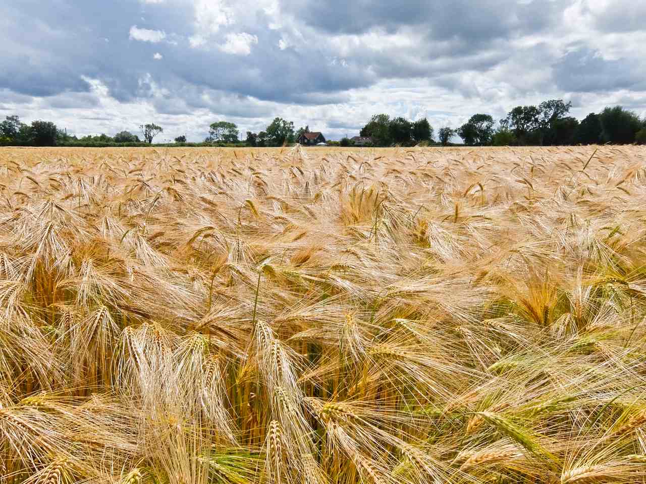 El día comienza con el distintivo aroma de la malta. Mistley ha estado malteando cebada desde el siglo XVII y ahora tiene la instalación más grande del país. El camino conduce a través del patio de la fábrica, luego a través de tierras de cultivo, hasta el pequeño Bradfield.